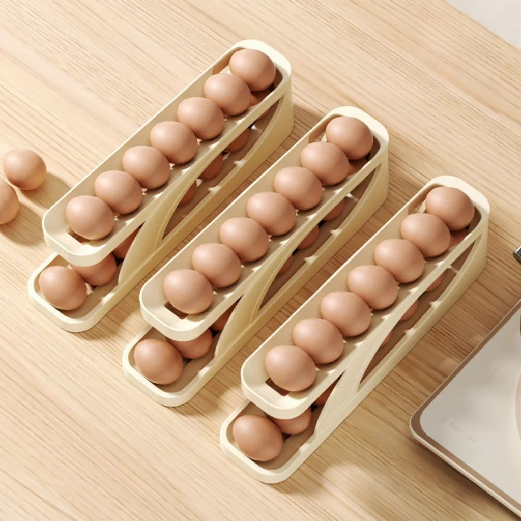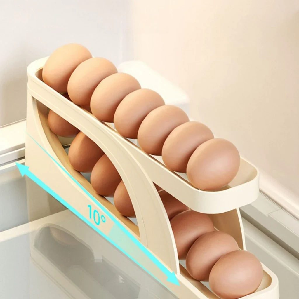 Este porta ovos conta com um suporte rolante integrado que permite fácil acesso e retirada dos ovos de ambos os lados, proporcionando conveniência no armazenamento.