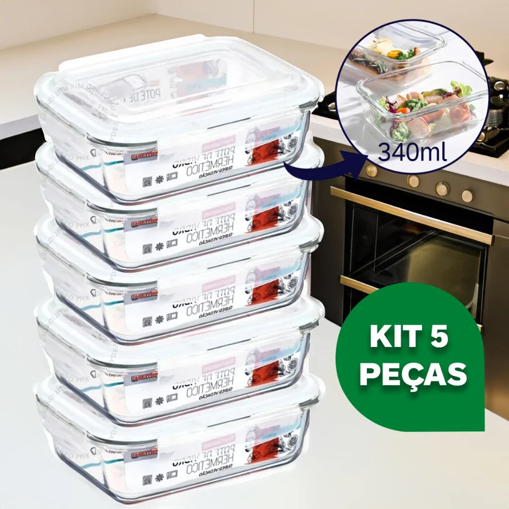 Pote de Vidro com Tampa Hermtica Click Glass - 5 Peças
