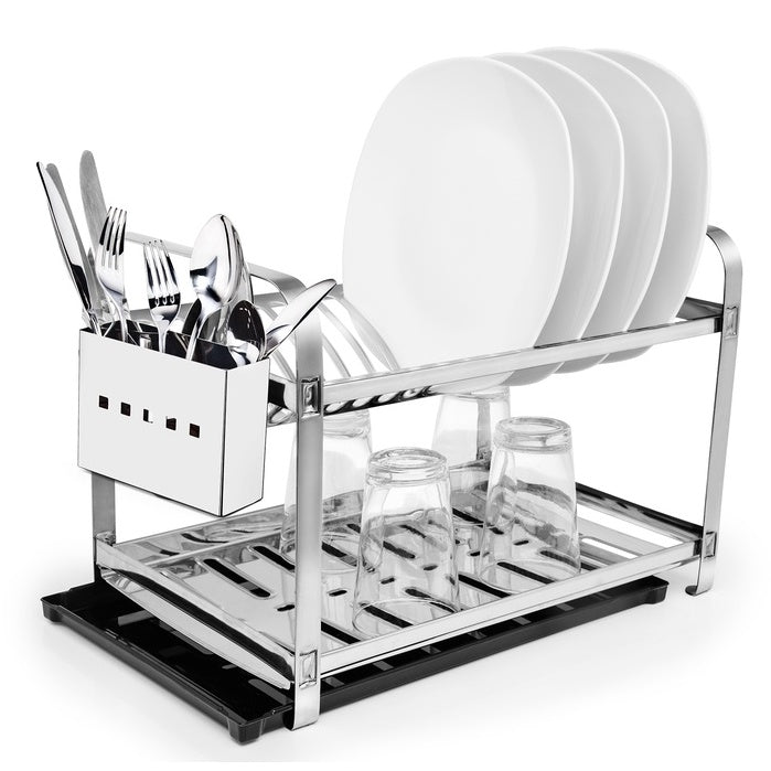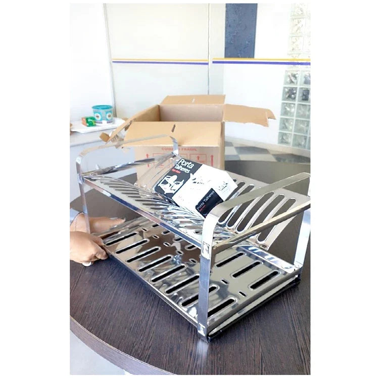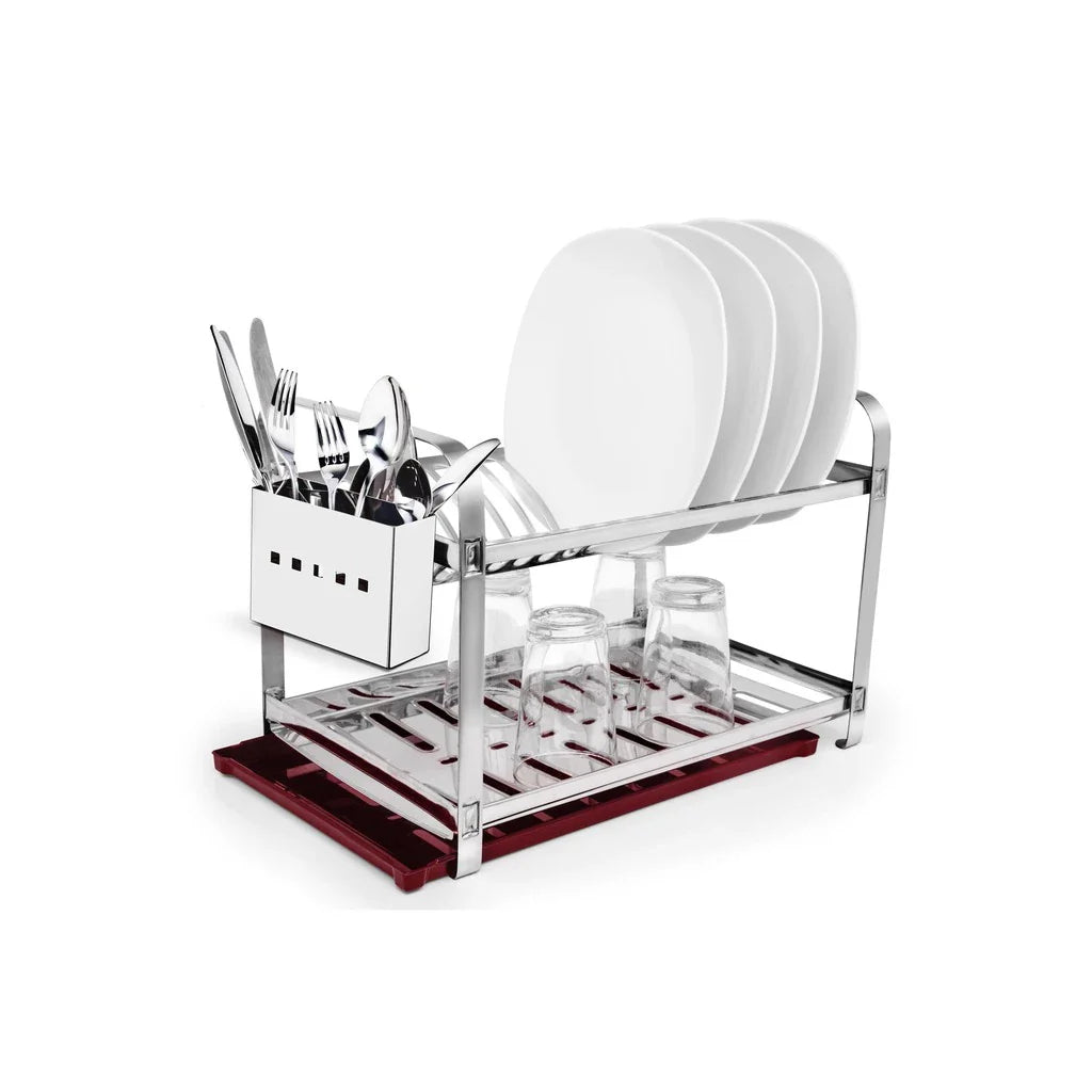 Escorredor aço inox 16 pratos com porta talher em aço inox, mantendo seus talheres e organizadores